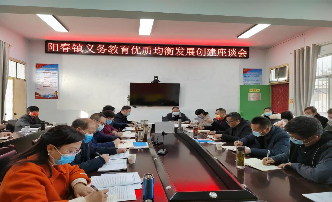 2022年2月25日上午,南郑区阳春镇召开义务教育优质均衡发展创建工作促进会。南郑区级领导何雨、何丽,南郑区委统战部副部长古彬,南郑区民宗局局长徐润福,南郑区工商联党组书记、副主席杜晓燕,南郑区教体局副局长楚建正,阳春镇党委书记李果、镇长王喆等人参加了会议。